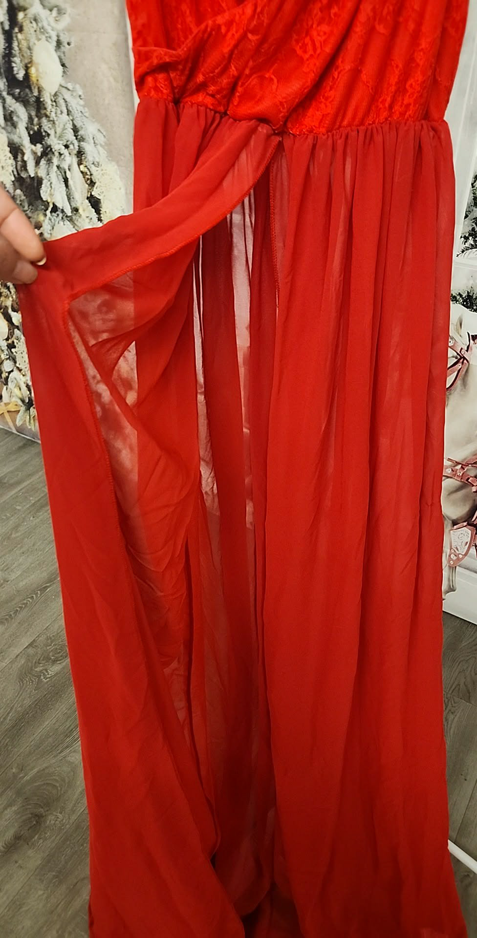 Red Lace Split Front